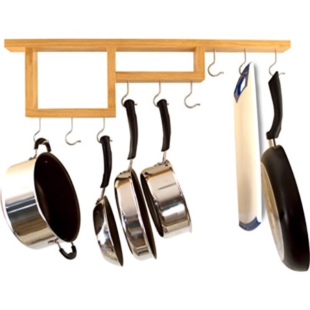 Pot Rack Easy To Reach Ceiling Mount Solidwood Pan Hanger By