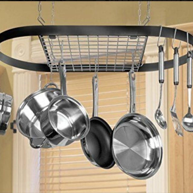 Details About Sorbus Pot And Pan Rack For Ceiling With Hooks Decorative Oval Mounted Stora